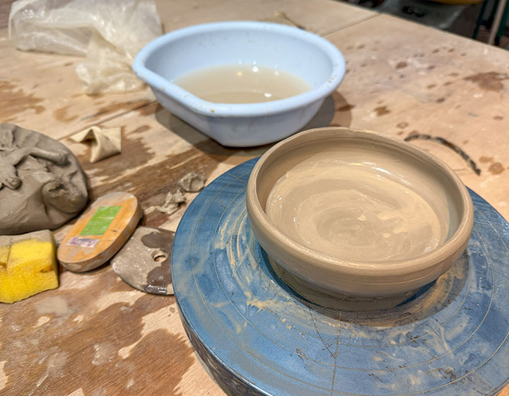 For the electric pottery wheel workshop, the wheel is placed between your legs, so skirts are not allowed.