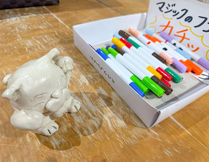 Regarding the maneki-neko, the teacher had told me beforehand, “We’ll fire it with white glaze.” But when I actually went to pick it up, they kindly suggested, “Would you like to try adding some color?”