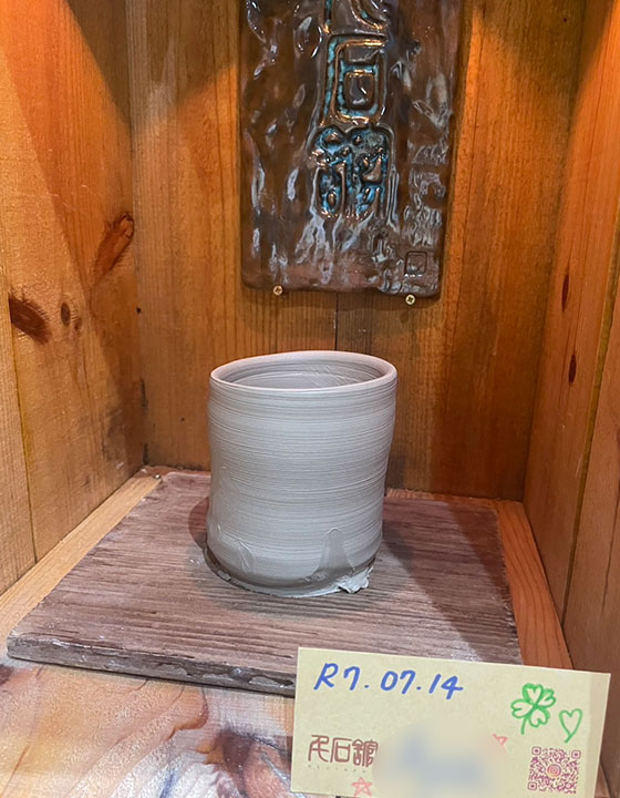 Another staff made a yunomi. It looks quite large in this state, but it will shrink to about 85% of its original size. It looks very easy to use!