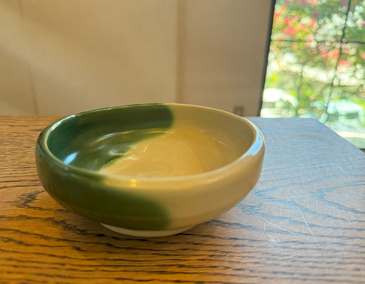 The bowl I made with my instructor. It’s perfect for serving nikujaga stew, or you could fill it with water and float flowers in it—it might look quite lovely.