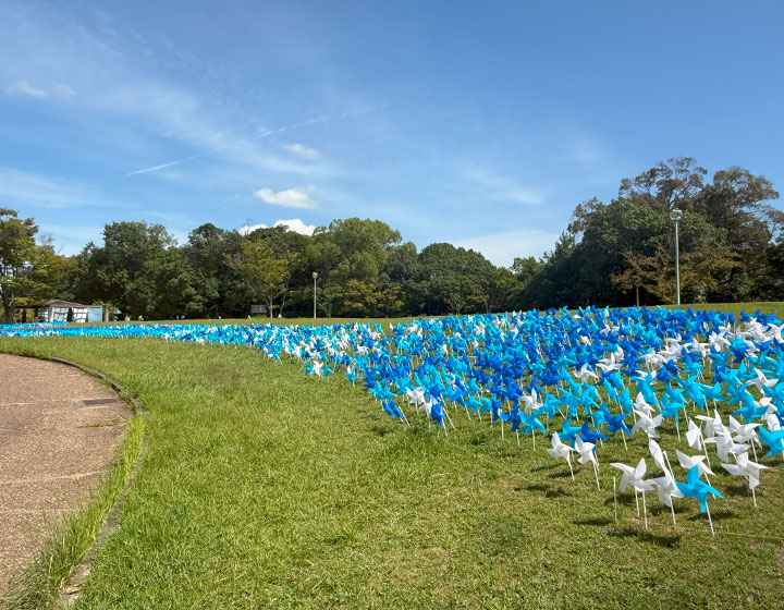 風の水たまり。水間遊園で1万本の風ぐるまプロジェクト