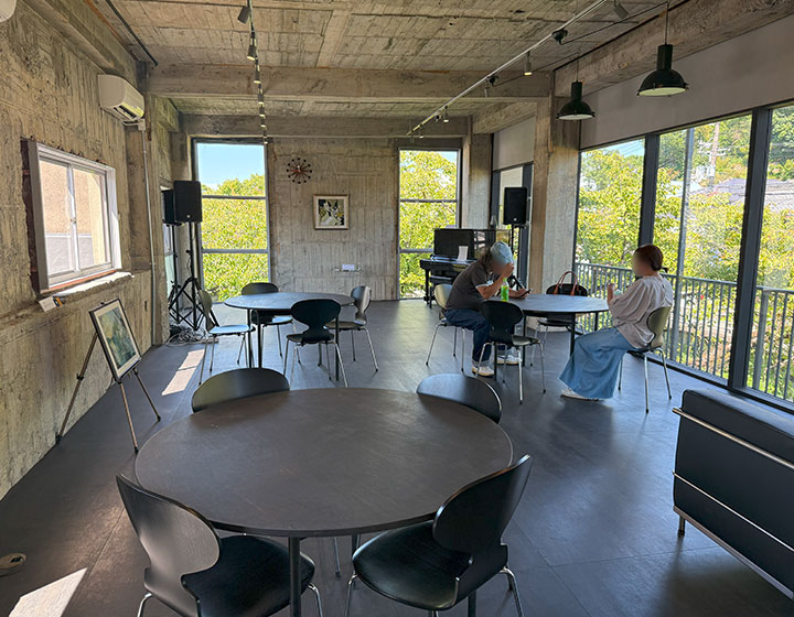 • 喫茶図書室1階では、招待アーティストの「東 明」氏の展示と体験を開催。