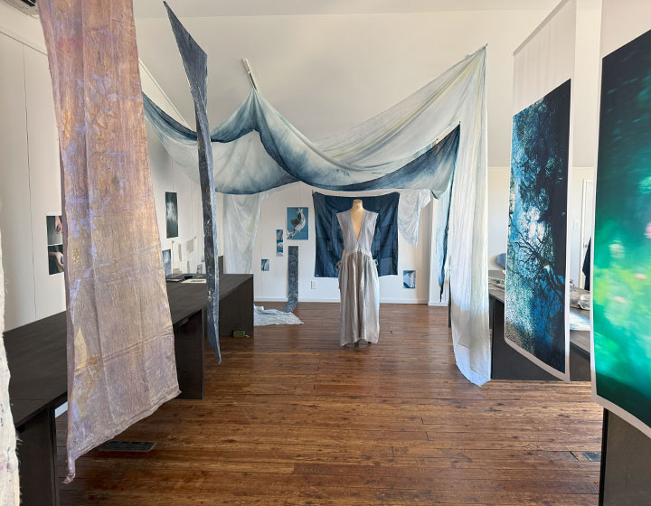 • 喫茶図書室の2階では、「ひととひと」がお送りする「草木染」「写真」「洋服」を使ったインスタレーション。
