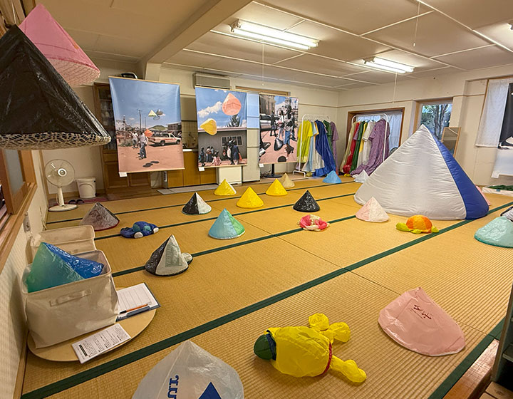 「円錐形パラシュート」が所狭しと散りばめられた空間には、子どもはもちろん大人もわくわく!