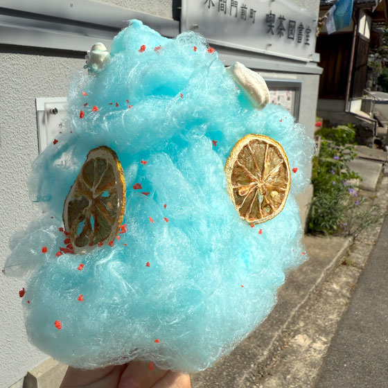 • 青色が美しいソーダ味のザラメが綺麗。わたあめの香りってノスタルジックですね。