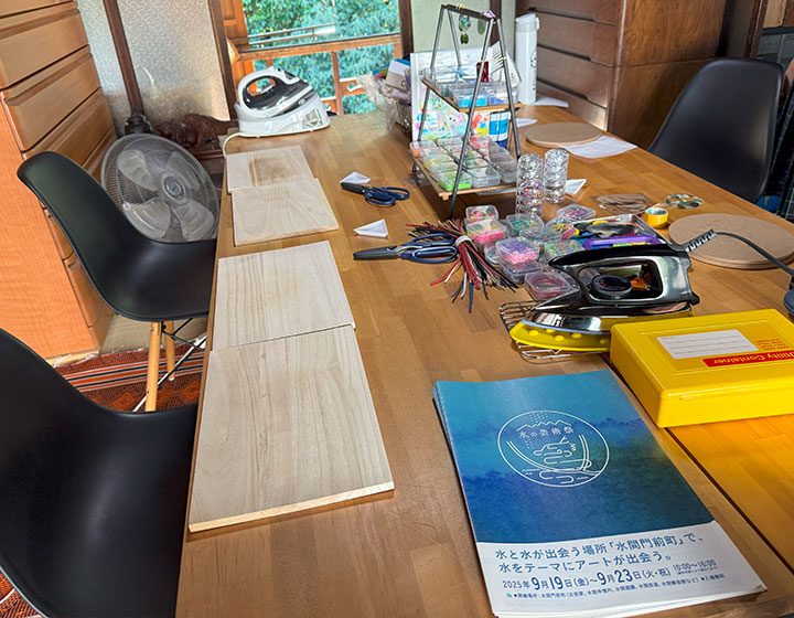 • 旧観月堂でワークショップを行っているのは、今回の水の芸術祭ロゴやポスターを制作された「FRAANE DESIGN」さん。