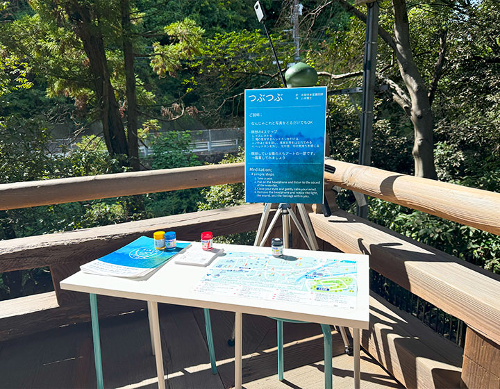 この場所では、実際に回廊下には川があり、降臨の滝のそばでもあるのですが、ヘッドフォンをつけると「今」の音とは違うものが流れている。不思議な感じ。
