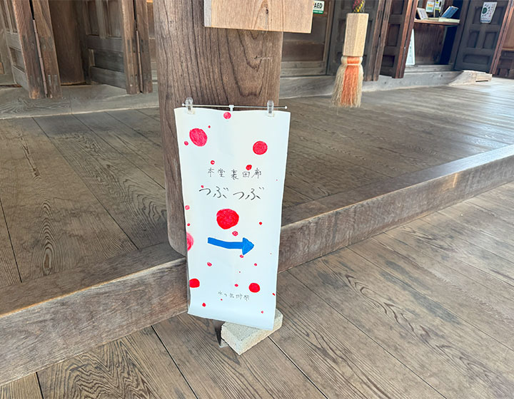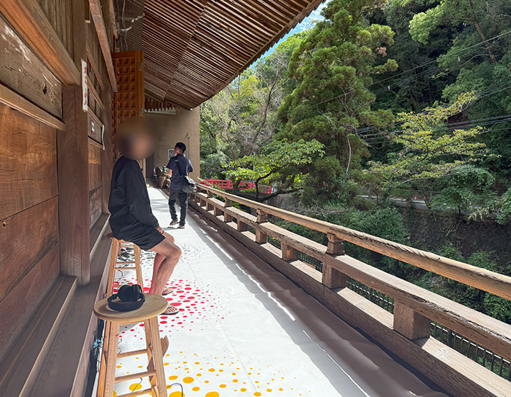 こちらは本堂の裏回廊で行われているサイトスペシフィックアート「つぶつぶ」。「つぶつぶ」とは水間寺に参拝する人々の「お祈りの気持ち」。