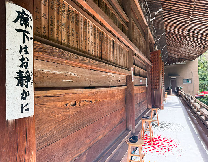 水間寺本堂の裏回廊。そこでしか見れない、感じられないものを探してみて。