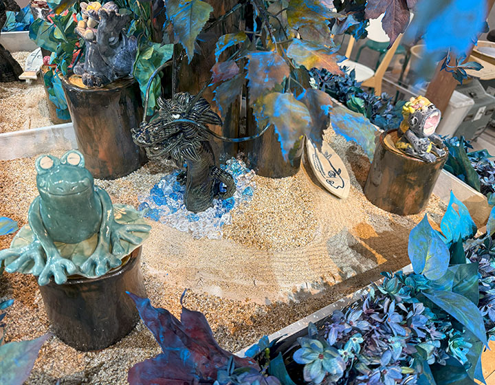 • 龍の胴体は、作品をぐるっと囲むように配置されています!カエルさんの表情にも癒される~。