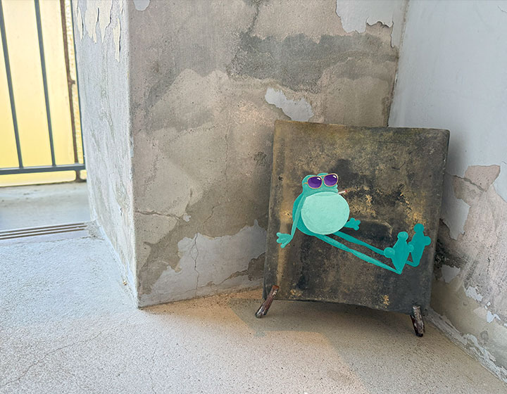 そしてベランダ部分にもご注目。かわいいカエルさんや、隠しキャラのようなアートも……?