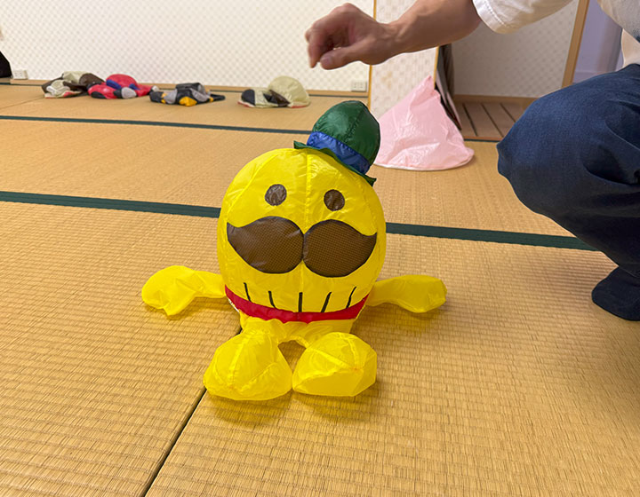 親子で遊べる膨らむ服の作品「パラフーク」は、実際に着用もできますよ。
