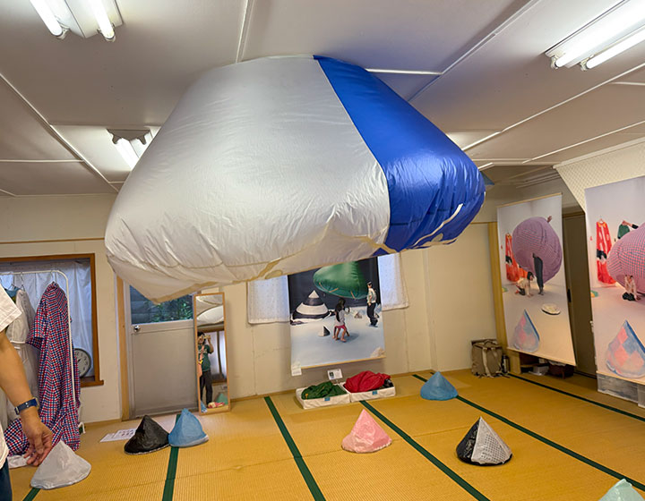 「円錐形パラシュート」が所狭しと散りばめられた空間には、子どもはもちろん大人もわくわく!